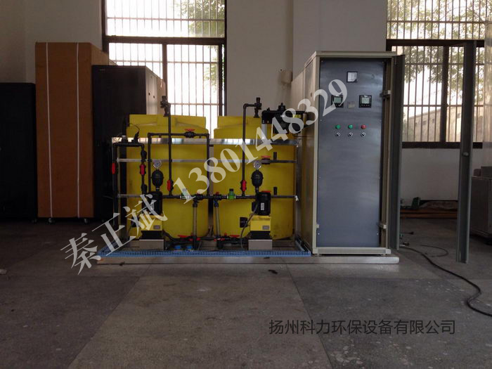循环水全自动加药装置。为了控制循环水的腐蚀、结垢,通常是靠投加一定浓度的缓蚀、阻垢剂来达到目的。要想获得良好的水处理效果,除选用优良的配方外,关键是要将水稳剂的浓度(有效含量)控制在规定的范围内。目前,国内循环水系统一般多数采用人工定时加药,通过分析取得水中药剂浓度有效值,以此为依据来调节计量泵的开度;或者通过对现场的排污量和补水量的计量,按一定的比例关系来进行药剂的投加。由于系统容积很大,分析数据的滞后性、分析频率的有限性以及系统存在泄漏等问题,要将水稳剂的浓度稳定控制在工业指标范围内,还存在着一定的困难。针对以上问题和用户要求,我们公司设计了利用荧光示踪技术投加水处理剂方案,它采用先进的示踪技术进行自动加药。当您使用该装置时,只要把我们生产的示踪剂加入到贵厂现场使用的水稳药剂中去,您的药剂就成了示踪型水处理药剂。操作时只需将循环水的回水引入控制仪的采样水进口,此时水中的药剂有效成份随时被荧光示踪仪所监测,同时在仪表显示屏上显示,并得到有效的控制。